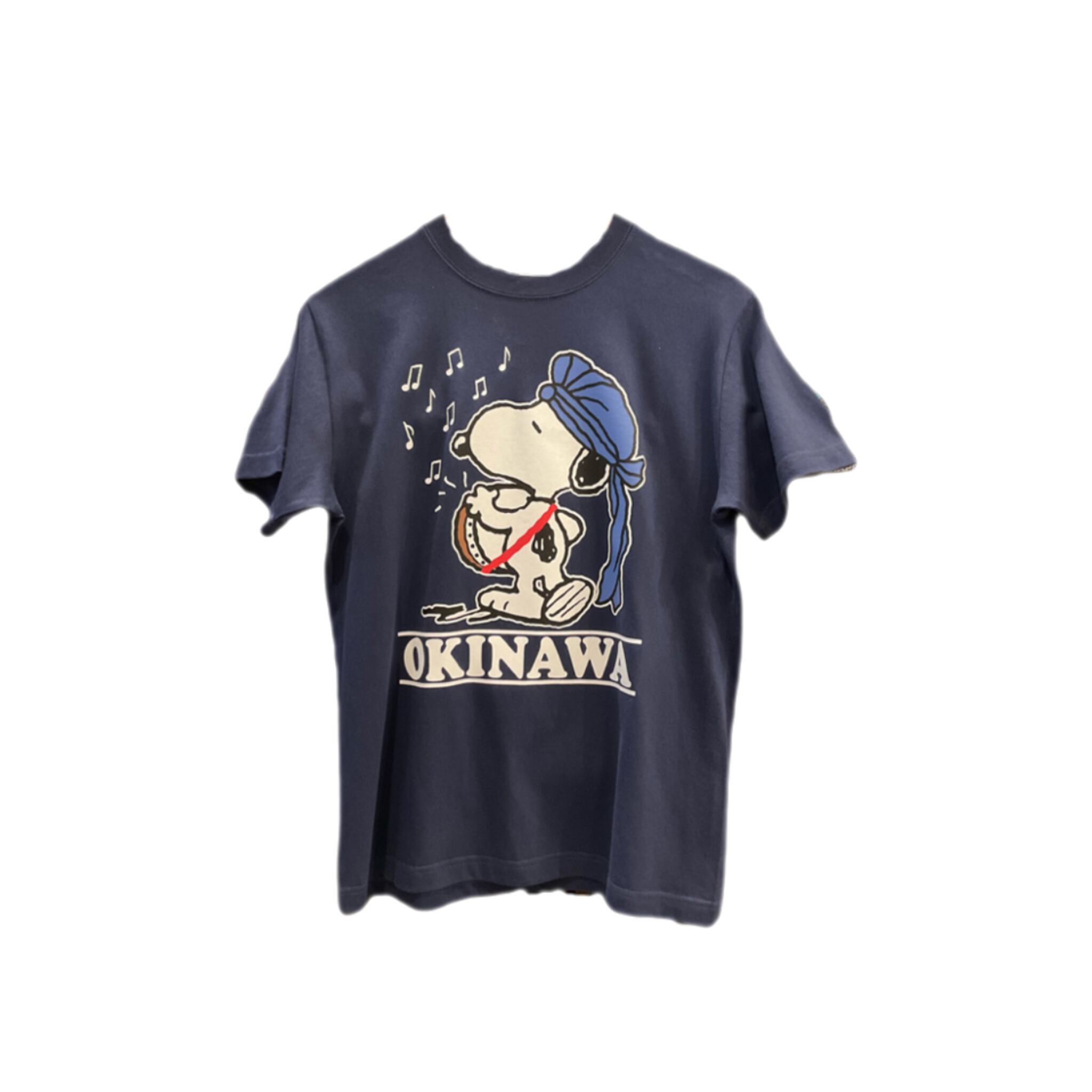デザイン:前面にエイサーをしているスヌーピーとOKINAWAの文字のプリント